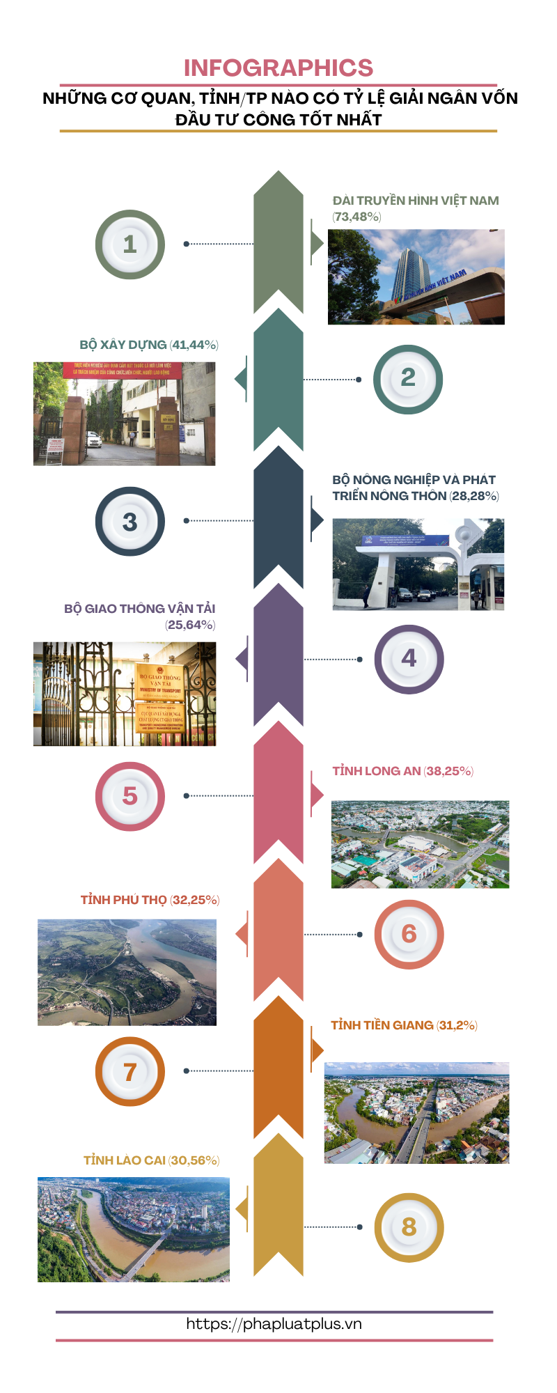 | INFOGRAPHICS - NHỮNG CƠ QUAN, TỈNH/TP NÀO CÓ TỶ LỆ GIẢI NGÂN VỐN ĐẦU TƯ CÔNG TỐT NHẤT |
