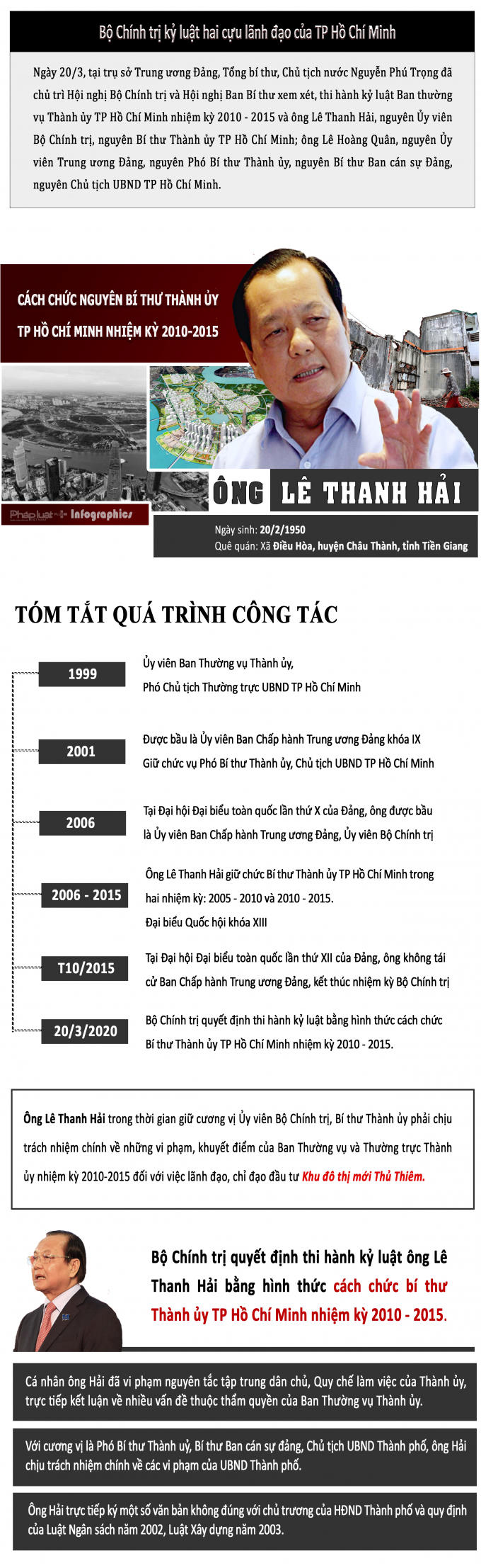 Infographics - Ông Lê Thanh Hải nguyên Bí thư Thành ủy TP Hồ Chí Minh bị cách chức