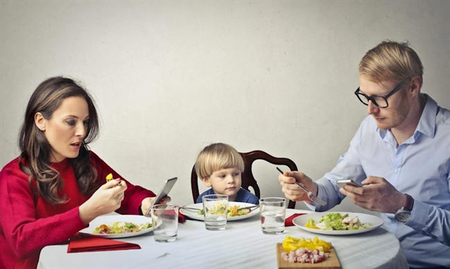 Mỗi thành viên chăm chú vào điện thoại trong bữa cơm là tình trạng phổ biến của mọi gia đình - Ảnh: Phunuonline