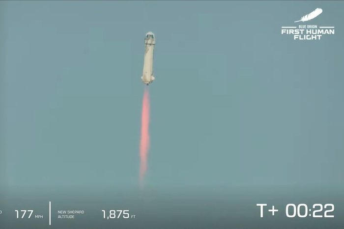 Jeff Bezos và các hành khách đã có vài phút lơ lửng không trọng lượng xung quanh khoang màu trắng rộng rãi. Bên trong khoang hành khách lắp nhiều cửa sổ, Bezos và những vị khách của ông đã trải qua một khoảng thời gian ngắn trải nghiệm lực hấp dẫn gấp 6 lần trên đường trở về.