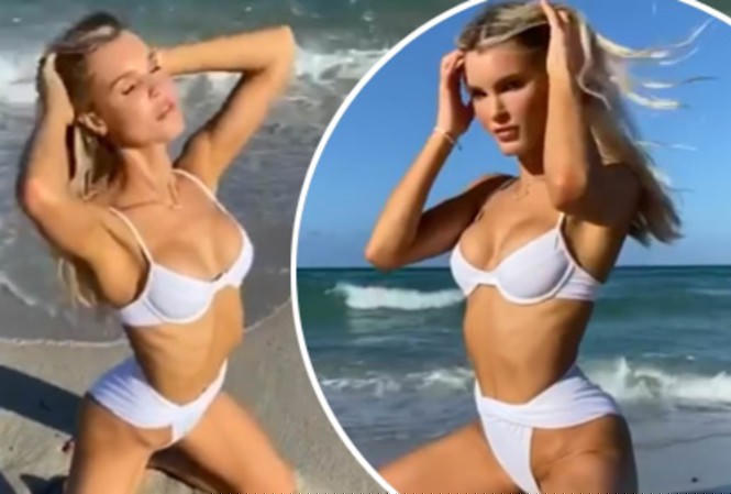 Nàng mẫu vừa tung clip mặc áo tắm 2 mảnh siêu sexy, thả dáng đẹp như tạc tượng ở bãi biển Miami (Mỹ).