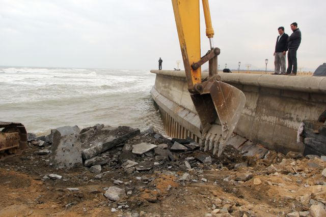 Chưa dừng lại ở đó, những ngày này, nhiều đợt sóng cao với cường độ mạnh liên tiếp bổ vào bờ, khoét sâu vào chân kè bảo vệ đường với độ sâu từ 5m -8m, dài hơn 600m.