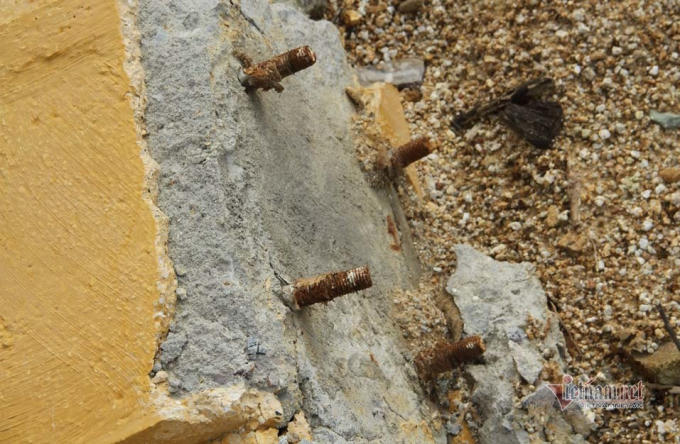 Kè sông sập đã để lộ ra nhiều đoạn chỉ làm bằng bê tông, không có cốt thép bên trong, phía dưới kè toàn cát, không trụ đỡ.
