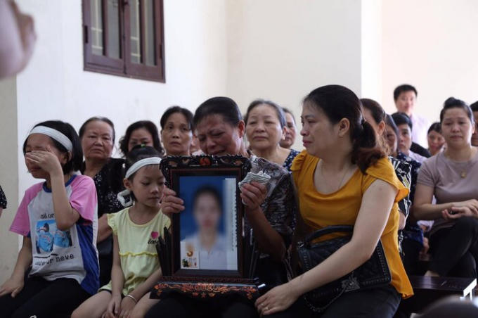 Người nhà bị hại trên tay cầm di ảnh khóc thảm thiết.