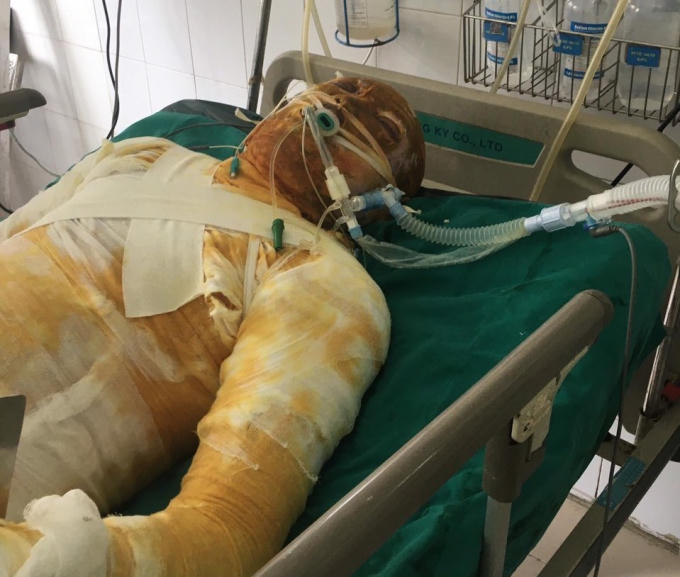 Anh S nạn nhân trong vụ việc bị bỏng đến 80 % cơ thể.