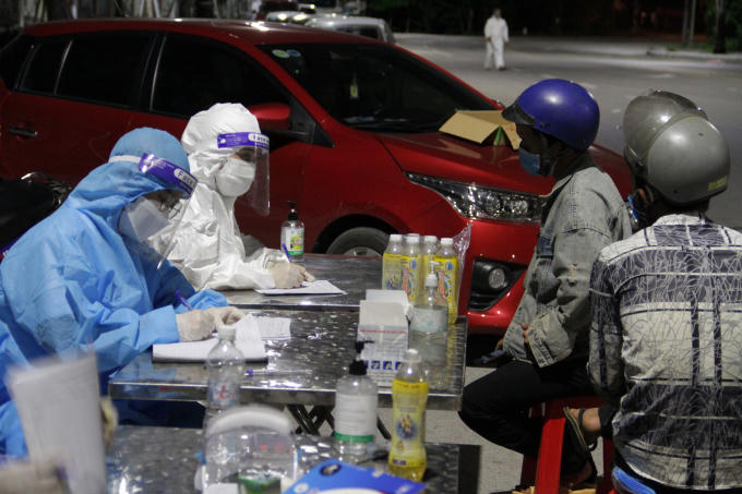 Công dân về từ các tỉnh phía Nam thực hiện khai báo y tế.