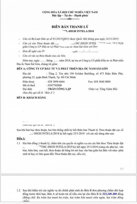 Hết niềm tin vào Công ty cổ phần Đầu tư LDG , hàng chục khách hàng đã tiến hành thanh lý hợp đồng đặt cọc dự án High Intela.