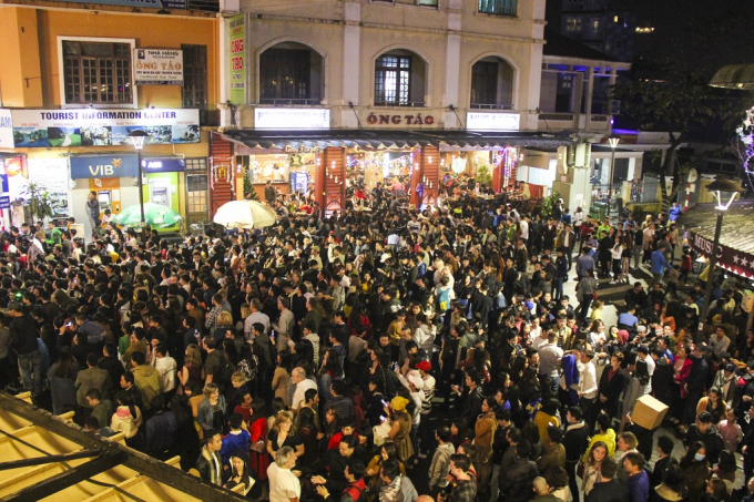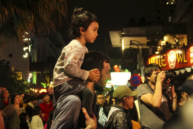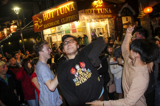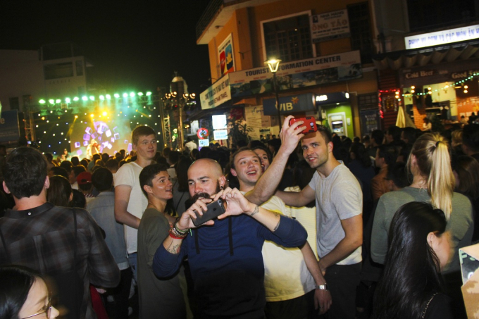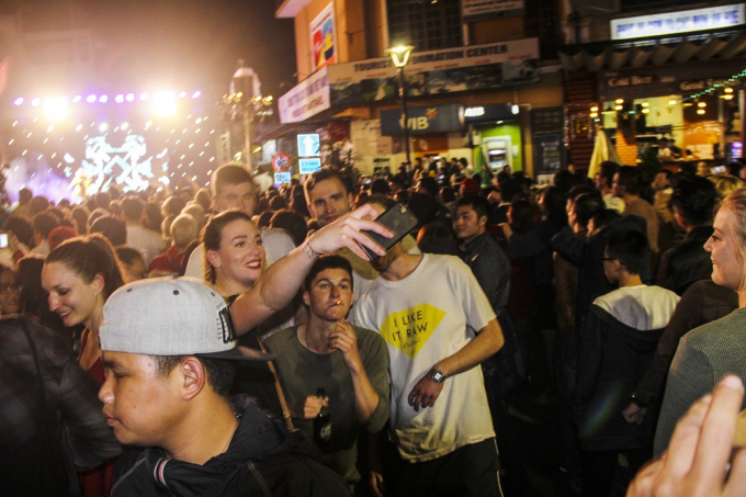 Tại phố đi bộ Phạm Ngũ Lão-Chu Văn An-Võ Thị Sáu, nhiều du khách nước ngoài và trong nước cũng nhộn nhịp tham gia các chương trình nhảy múa, ca hát… chào mừng năm mới 2018.