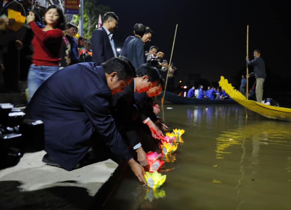 Đêm khai hội được huyện Hưng Nguyên chuẩn bị công phu với màn trống hội và xây dựng chương trình sử thi gồm 3 phần: Đất thiêng mỏ hạc Linh từ; Đức Thánh giáng trần và hào khí quê hương và thả đèn hoa đăng trên sông Mộc nằm cầu cho quốc thái dân an, đáp ứng nhu cầu văn hóa tâm linh của người dân cùng du khách.