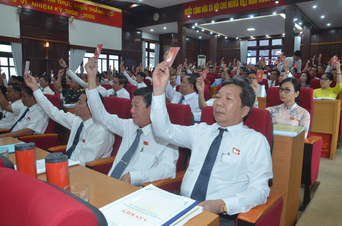 Đại biểu biểu quyết thông qua chương trình đại hội phiên chính thức.
