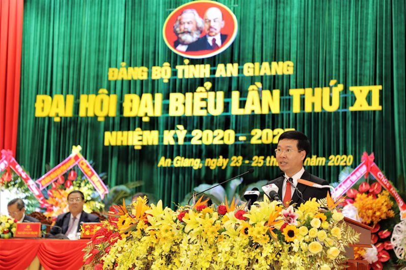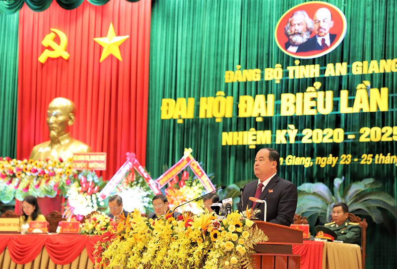 Phát biểu chỉ đạo đại hội, ông Võ Văn Thưởng - Ủy viên Bộ Chính trị, Bí thư Trung ương Đảng, Trưởng ban Tuyên giáo Trung ương đánh giá cao những thành quả mà Đảng bộ và Nhân dân An Giang đạt được thời gian qua, cũng như các giải pháp tháo gỡ các "điểm nghẽn" trong phát triển, thu hút đầu tư, đẩy mạnh cải cách thủ tục hành chính, khuyến khích tập trung đất đai, huy động nguồn lực xây dựng, phát triển kết cấu hạ tầng kinh tế - xã hội.