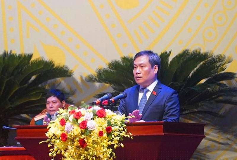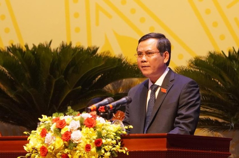 Phó Bí thư Thường trực Tỉnh uỷ Quảng Bình Trần Thắng trình bày báo cáo chính trị.