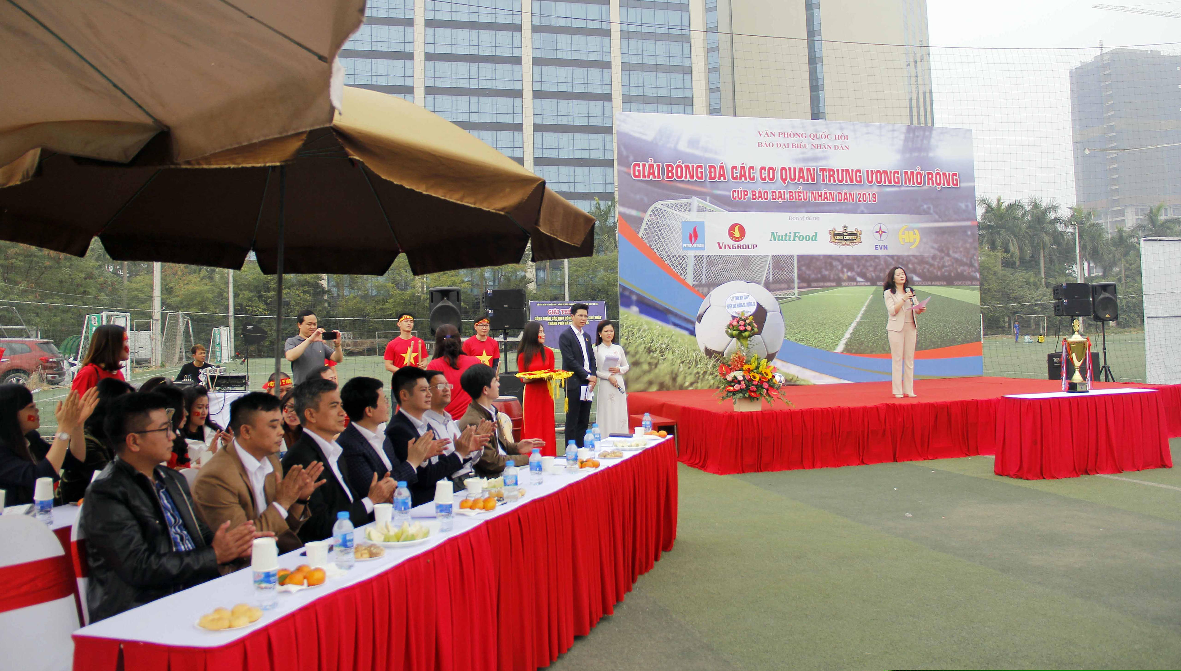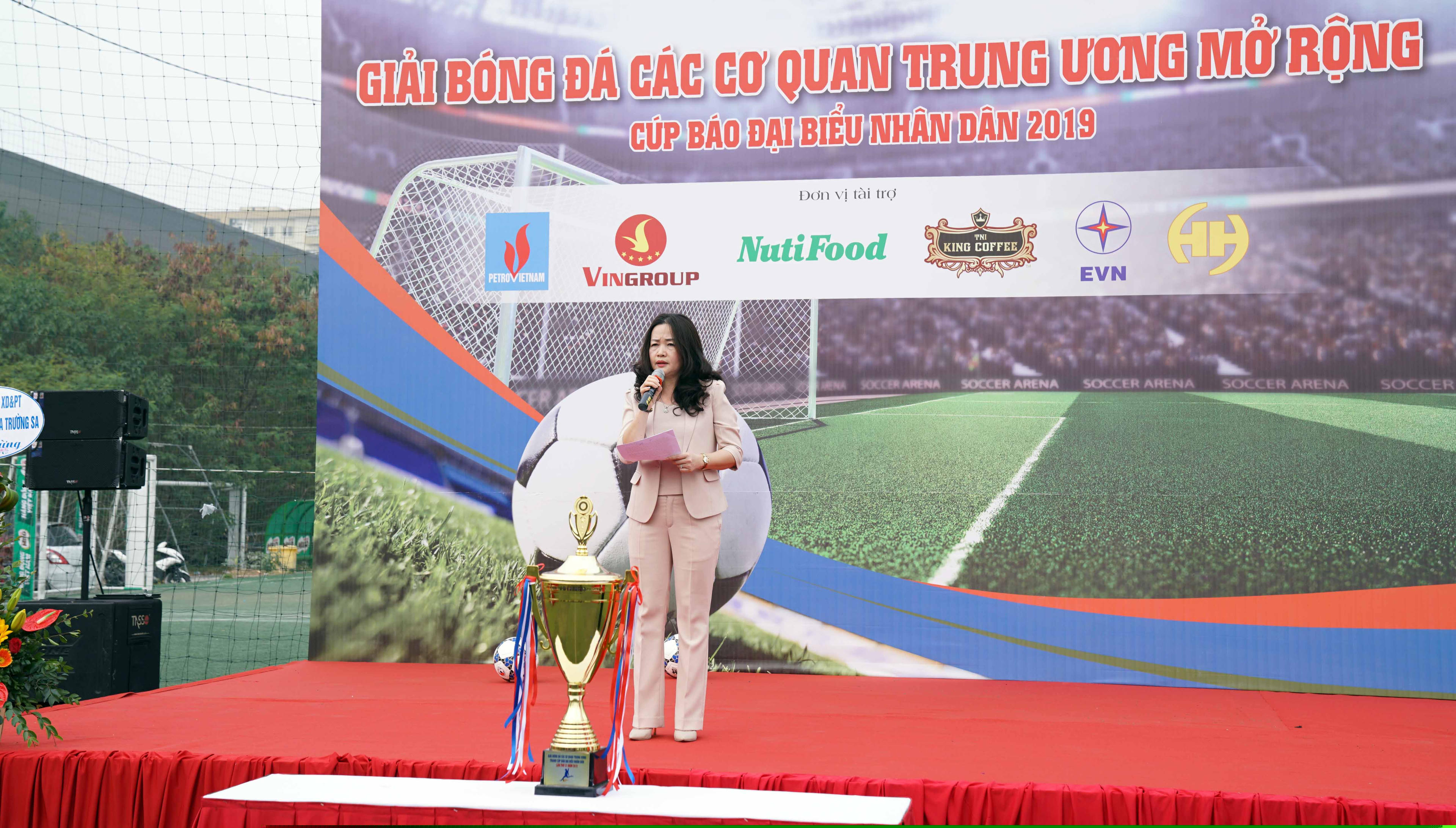 Phát biểu tại Lễ khai mạc, Phó Tổng Biên tập Báo Đại biểu Nhân dân - Trưởng Ban tổ chức Giải Phạm Thị Thanh Huyền, cho biết: Thực hiện chương trình công tác năm 2019 của Đoàn Thanh niên Văn phòng Quốc hội, chào mừng thành công của Kỳ họp thứ Tám, Quốc hội Khóa XIV, Báo Đại biểu Nhân dân phối hợp với Đoàn Thanh niên Văn phòng Quốc hội tổ chức Giải Bóng đá các cơ quan Trung ương mở rộng Cup Đại biểu Nhân dân lần thứ 21. Giải được diễn ra trong các ngày 14.12 và 21 – 22.12. Đây là hoạt động tập thể có ý nghĩa nhằm mở rộng giao lưu hữu nghị giữa các cơ quan, đơn vị; tăng cường gắn kết tình đồng chí, đồng nghiệp trong cơ quan.
