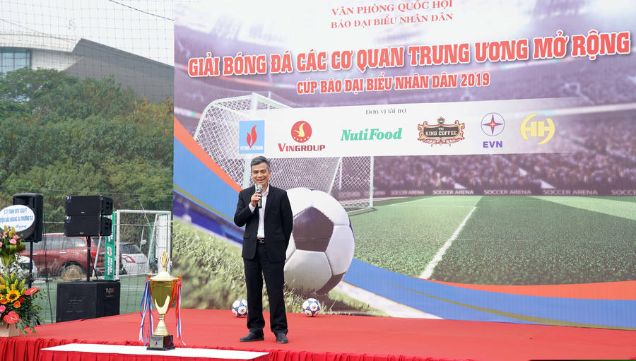 Thay mặt Đảng ủy, Lãnh đạo Văn phòng Quốc hội, Phó Bí thư Thường trực Đảng ủy Cơ quan Văn phòng Quốc hội Nguyễn Đức Thụ chúc mừng các tổ chức, đơn vị, cá nhân đã phối hợp để tổ chức giải thể thao ý nghĩa này; đề nghị các trọng tài làm việc công minh để tìm ra nhà vô địch xứng đáng; các cầu thủ thi đấu hết mình và fair-play, các cổ động viên cổ động nhiệt tình, sôi nổi để giải đấu thành công.