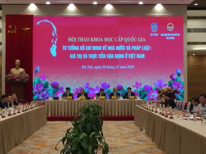 Sáng 30/11, Bộ Tư pháp đã phối hợp với Học viện Chính trị quốc gia Hồ Chí Minh tổ chức Hội thảo khoa học cấp quốc gia “Tư tưởng Hồ Chí Minh về Nhà nước và pháp luật – Giá trị và thực tiễn vận dụng ở Việt Nam”. Đồng chí Trương Hòa Bình, Ủy viên Bộ Chính trị, Phó Thủ tướng thường trực Chính phủ chủ trì Hội thảo.