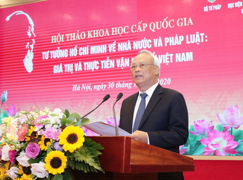 Hoan nghênh và đánh giá cao Bộ Tư pháp đã phối hợp với Học viện Chính trị quốc gia Hồ Chí Minh, các ban, bộ, ngành, cơ quan liên quan tổ chức Hội thảo quan trọng này, Phó Chủ tịch Quốc hội đề nghị các đại biểu tập trung trao đổi, thảo luận về một số vấn đề: nguồn gốc hình thành, đặc trưng cơ bản và các yếu tố chi phối quá trình hình thành và phát triển tư tưởng HCM về Nhà nước và pháp luật; thực tiễn vận dụng tư tưởng HCM trong 75 năm qua, nhất là trong 35 năm đổi mới; giải pháp vận dụng sâu sắc hơn tư tưởng của Người trong giai đoạn mới để công tác xây dựng, hoàn thiện thể chế trở thành nhân tố quan trọng hàng đầu thúc đẩy sự phát triển nhanh và bền vững của đất nước trong giai đoạn từ nay tới 2030 và tầm nhìn đến năm 2045 như Dự thảo Văn kiện Đại hội XIII của Đảng đang thể hiện…