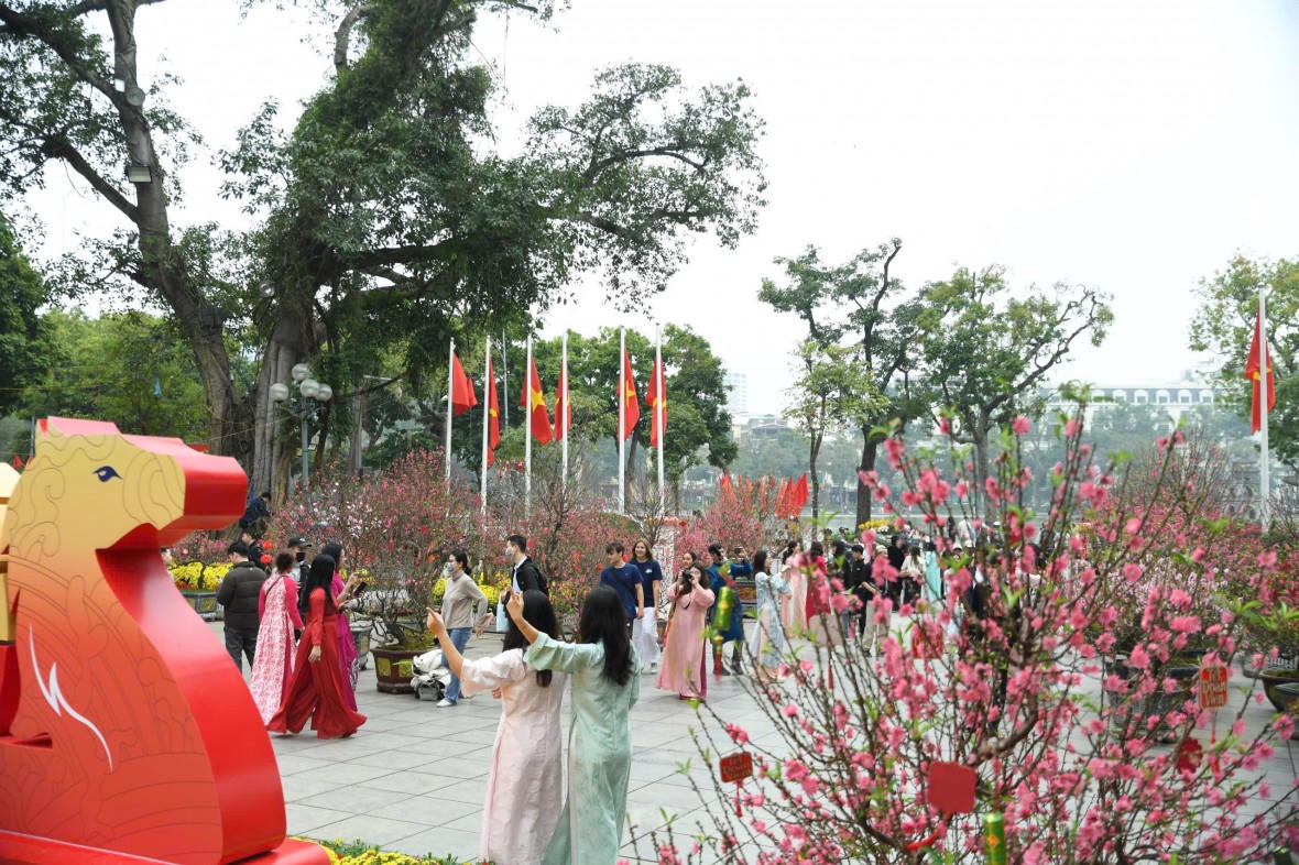Không gian hoa xuân tại khu vực vườn hoa Lý Thái Tổ sẽ phục vụ nhân dân và du khách tham quan, thưởng lãm đến hết ngày 3/3/2026 (tức Rằm tháng Giêng năm Bính Ngọ).