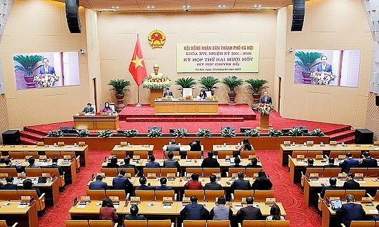 | Khai mạc kỳ họp thứ 21 HĐND thành phố Hà Nội khóa XVI. (Ảnh dbndhanoi.gov.vn) |