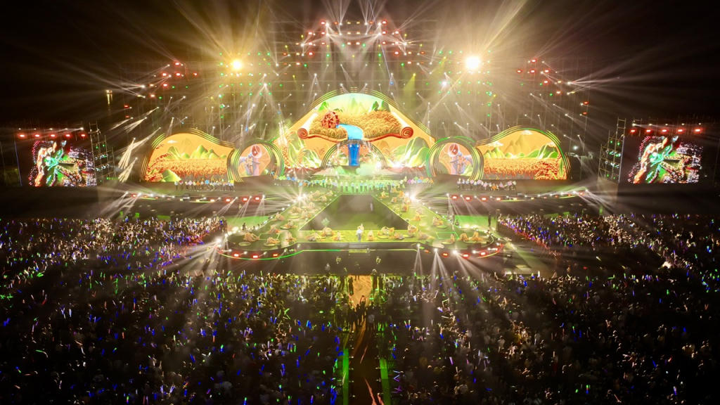 Khán đài chương trình có quy mô 50.000 chỗ, gồm 18 khu vực đứng và ngồi, được thiết kế theo cảm hứng từ hình tượng “sóng”, kết nối liền mạch từ trung tâm ra các khu vực xung quanh.
