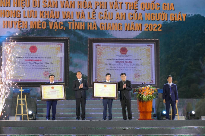 : Lãnh đạo huyện Mèo Vạc nhận quyết định công nhận 2 di sản văn hóa phi vật thể cấp quốc gia.