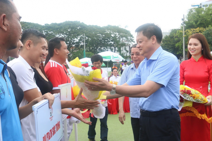 Ông Dương Tấn Hiển - Phó Chủ tịch UBND TP Cần Thơ trao hoa cho các đội bóng tham dự vòng chung kết Press cup 2019.