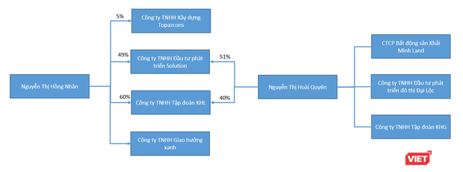 Đáng chú ý, bà Nguyễn Thị Hoài Quyên và bà Nguyễn Thị Hồng Nhân cũng là những cổ đông nắm toàn bộ vốn tại Solution (tính đến tháng 7/2019) và Công ty TNHH Tập đoàn KHL (tính đến tháng 10/2019). Bà Nguyễn Thị Hoài Quyên từng là cổ đông lớn của KHG và đã giảm tỉ lệ sở hữu xuống 4,27% vốn điều lệ từ tháng 11/2021./.