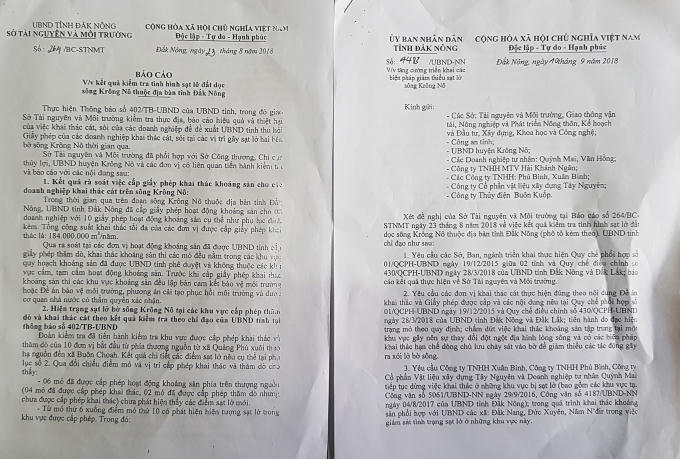 Báo cáo của Sở TNMT và văn bản chỉ đạo của UBND tỉnh Đắk Nông.