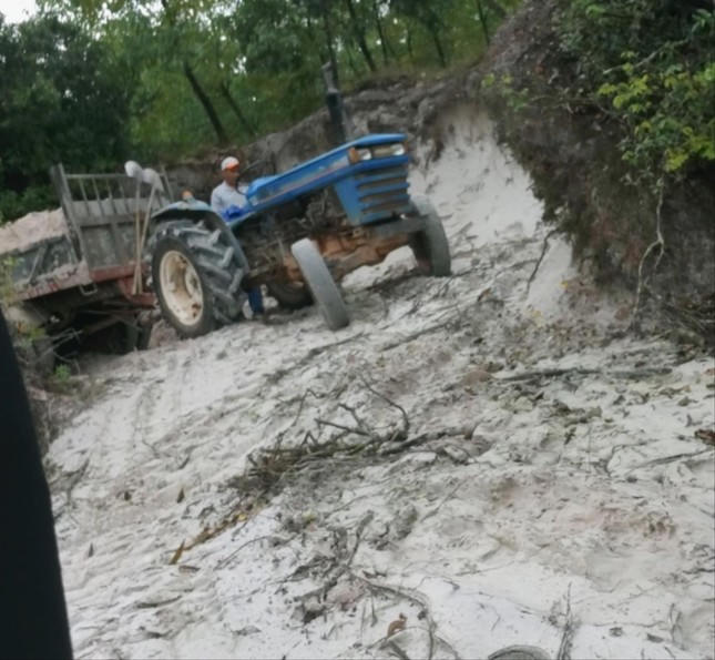 | Xe đầu máy Kobota khai thác, vận chuyển trái phép cát trắng ở khu vực đồi Con Voi |