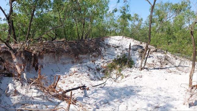 Ở khu rừng phòng hộ đối diện, quãng chừng cây số đường chim bay cũng xảy ra tình trạng tận thu cát, cây rừng bị bức tử. Nhiều đồi cát trắng cùng với rừng tràm hoa vàng nhiều năm tuổi đang bị các “cát tặc” băm nát, múc và vận chuyển trái phép đi nơi khác hàng trăm m3 đất cát mỗi ngày.
