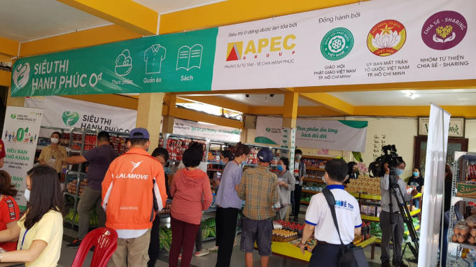 Siêu thị Hạnh Phúc 0 đồng tại chùa Vĩnh Nghiêm Quận 3, TP HCM đã chính thước khai trương phục vụ bà con khó khăn trong mùa dịch Covid-19.