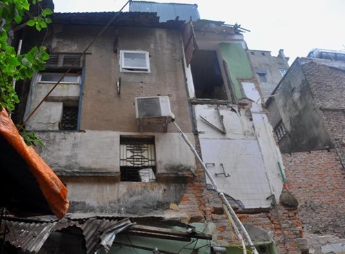 Cũng theo ghi nhận, một số hộ liền kề ngôi nhà 3 tầng sập tường gạch có nhiều dấu hiệu bị ảnh hưởng do sự cố.