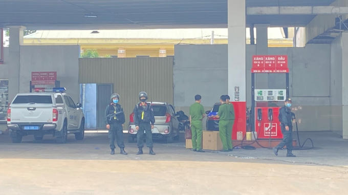 Lực lượng chức năng khám xét trụ sở và cây xăng kế bên của Công ty Vân Trúc.