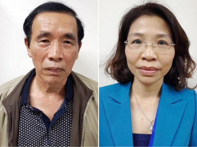 Bị can Nguyễn Tiến Học (trái) và Phạm Thị Kim Tuyến.