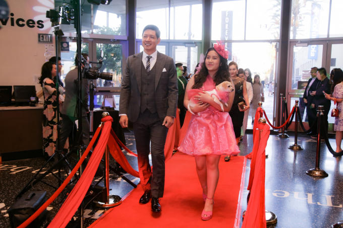 Bình Minh cùng diễn viên Angelina Raja sải bước tại sự kiện ra mắt phim ở Mỹ.