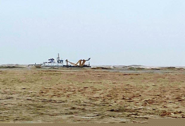 Tàu Vietship 01 đang mắc cạn trên biển Cửa Việt, tỉnh Quảng Trị. (Nguồn: nhandan.com.vn)