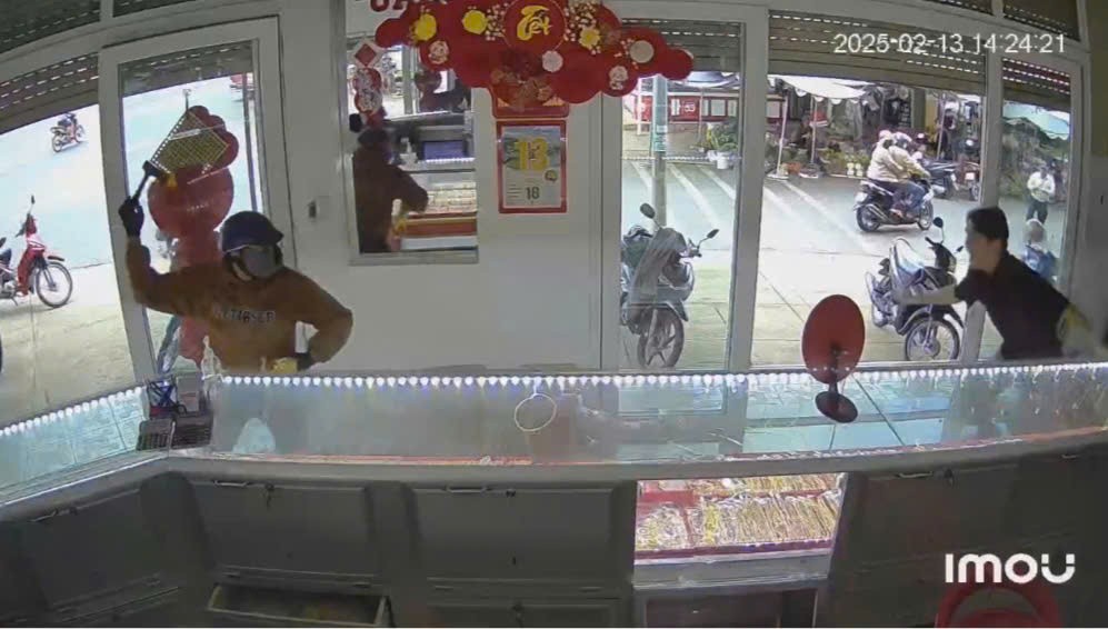 Toàn bộ diễn biến vụ cướp tiệm vàng được camera an ninh ghi lại. Hình ảnh camera an ninh ghi lại cho thấy, đối tượng mặc áo khoác màu vàng, đội nón bảo hiểm và đeo khẩu trang che kín mặt mang theo búa vào một tiệm vàng trên địa bàn thị trấn Di Linh (huyện Di Linh) phá tủ kính lấy đi nhiều vàng rồi tẩu thoát.