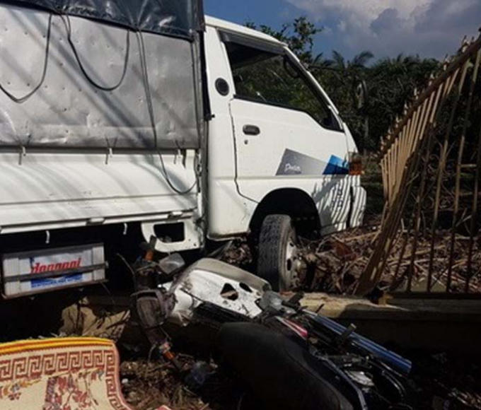 Cú tông mạnh, khiến ông Dưỡng tử vong tại chỗ, còn vợ bị thương nặng được người dân đưa đi cấp cứu. Sau khi tông xe máy, xe tải lao vào tường rào sắt một nhà dân trước khi dừng lại.