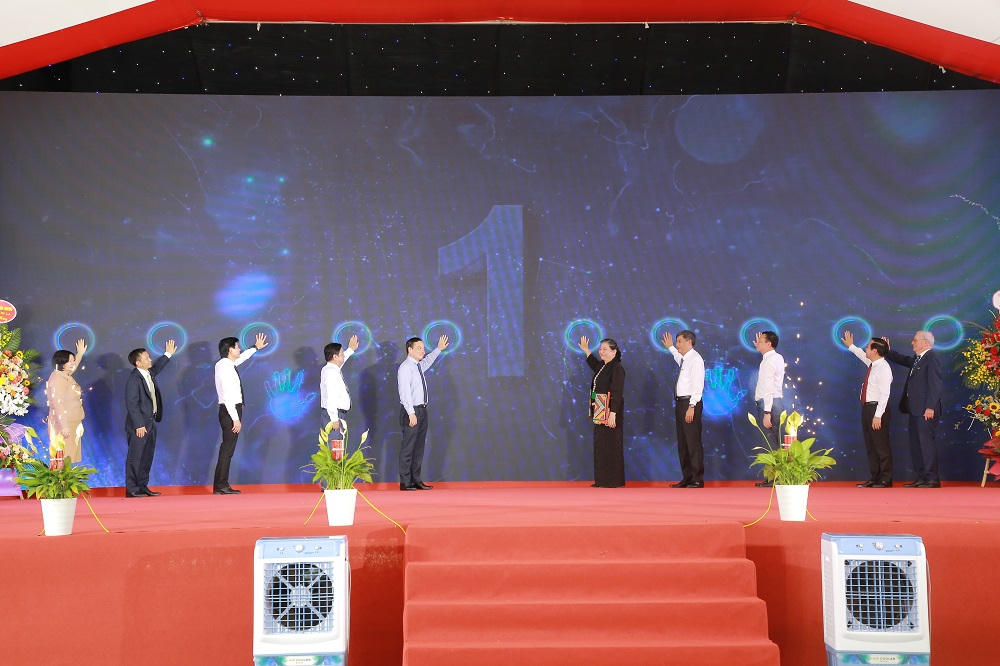 Các đại biểu bấm nút khánh thành Trung tâm chế biến rau quả Doveco Sơn La.