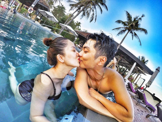 Phan Hiển thoải mái ôm hôn bà xã ở nơi đông người, trái ngược với tin đồn trục trặc hôn nhân. (Ảnh: Windy Nguyễn).