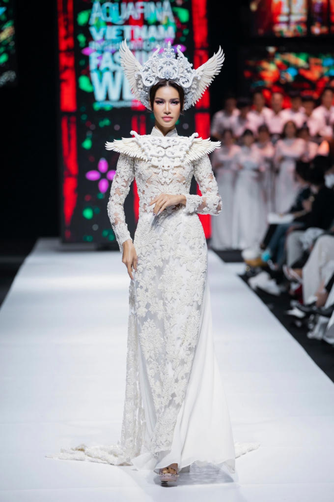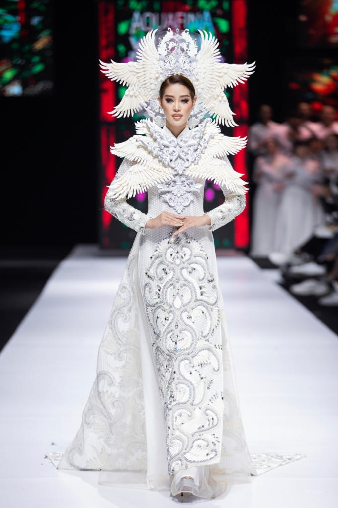 Hoa hậu Hoàn vũ Việt Nam Khánh Vân xuất hiện trong vai trò kết màn. Vẫn là áo dài trắng kín đáo, điểm nhấn của thiết kế nằm ở hoạ tiết chim phượng đầy nổi bật. Các chi tiết được thêu cầu ký, toát lên sự sang trọng, quyền lực cho người đẹp sinh năm 1995, đồng thời tạo ra cái kết đẹp cho bộ sưu tập.