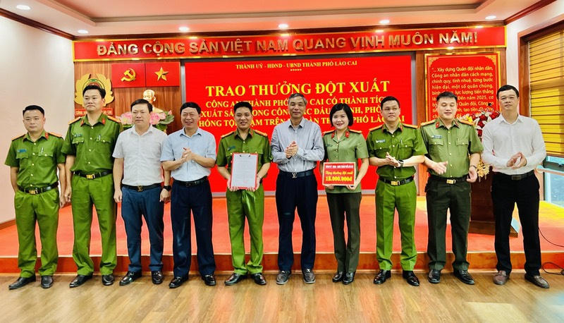 Thành uỷ, UBND TP Lào Cai (tỉnh Lào Cai) đã tổ chức khen thưởng đột xuất đối với tập thể Công an TP Lào Cai