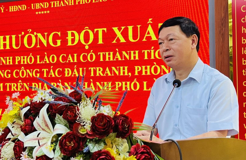 Phát biểu tại buổi khen thưởng ông Đỗ Trường Sơn, Bí thư Thành uỷ Lào Cai đã biểu dương, khen ngợi tinh thần đấu tranh phòng chống tội phạm của tập thể và các cá nhân có thành tích xuất sắc.