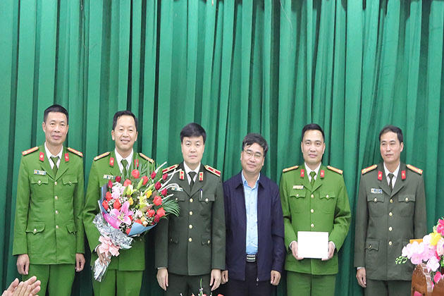 Thiếu tướng Nguyễn Ngọc Vân, Ủy viên BTV tỉnh ủy, Giám đốc Công an tỉnh cùng lãnh đạo huyện Bắc Yên động viên, khen thưởng Ban chuyên án.