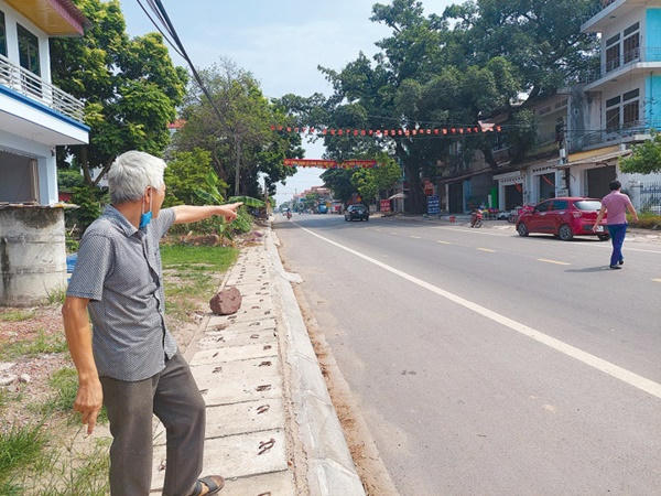 Tận tay chỉ mốc giới thửa đất trước đây của gia đình mình, ông Đồng Văn Bình (SN 1957, trú tại thôn Kim Tràng, xã Việt Lập) chia sẻ: “Gia đình tôi có 2 thửa đất ở nằm 2 bên QL17.