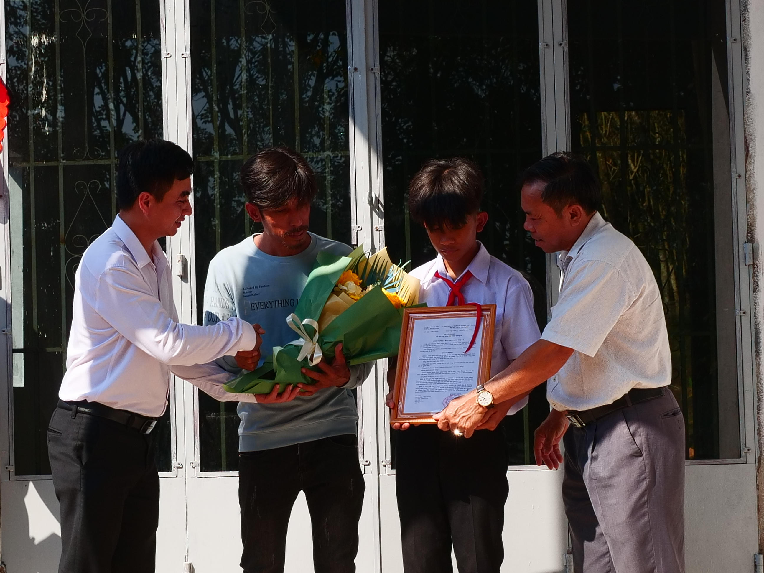 Thượng tọa Thích Trung Sơn, Phó Ban Kinh tế - Tài chính Trung ương Giáo hội Phật giáo Việt Nam, Phó ban từ thiện Thành hội Phật giáo TP. HCM, Trụ trì chùa Vân Sơn (Núi Một, Côn Đảo, BR-VT) từ tốn bộc bạch nằm trong chuỗi các hoạt động hỗ trợ người dân có hoàn cảnh khó khăn trong dịp Xuân về của Phật giáo cả nước, việc trao nhà lần này nhằm san sẻ nỗi khó với cha con em Bảo để “không một ai bị bỏ lại phía sau” và mong cuộc sống của gia đình em Bảo sẽ ngày một tốt hơn.