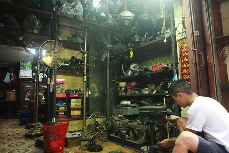 "Hiện tại ở Hà Nội rất ít cửa hàng sửa chữa quạt cổ, chỉ có 2 – 3 cửa hàng. Chính vì vậy, thợ sửa chữa quạt cổ cũng rất hiếm, tôi và 2 người thợ ở đây do chính bố tôi đào tạo", con trai ông Phúc cho hay.