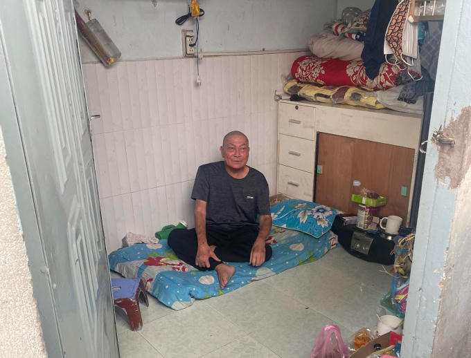 Ông Rỡ trong căn phòng trọ tồi tàn.
