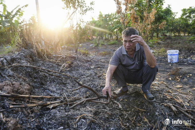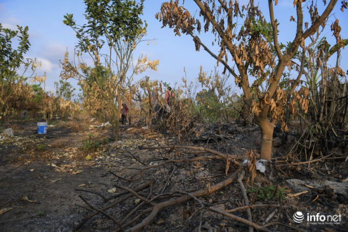 Vườn cây bị đốt khiến tâm lý nhiều hộ dân ở đây vô cùng hoang mang.