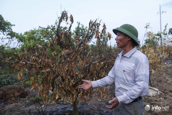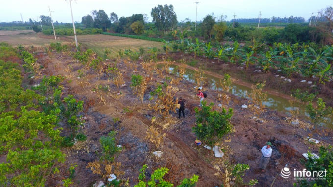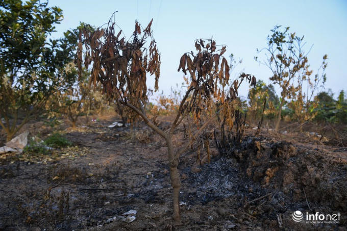 Hàng trăm gốc cây ăn quả của người dân đội 1, thôn Yên Lịch, xã Dân Tiến, huyện Khoái Châu, Hưng Yên bị đốt cháy.