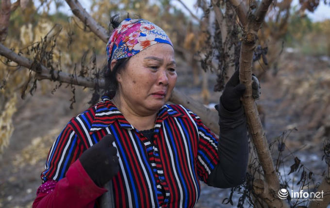Bà Phạm Thị Tuyết đau lòng, nhìn những hàng cây của mình bị cháy rụi